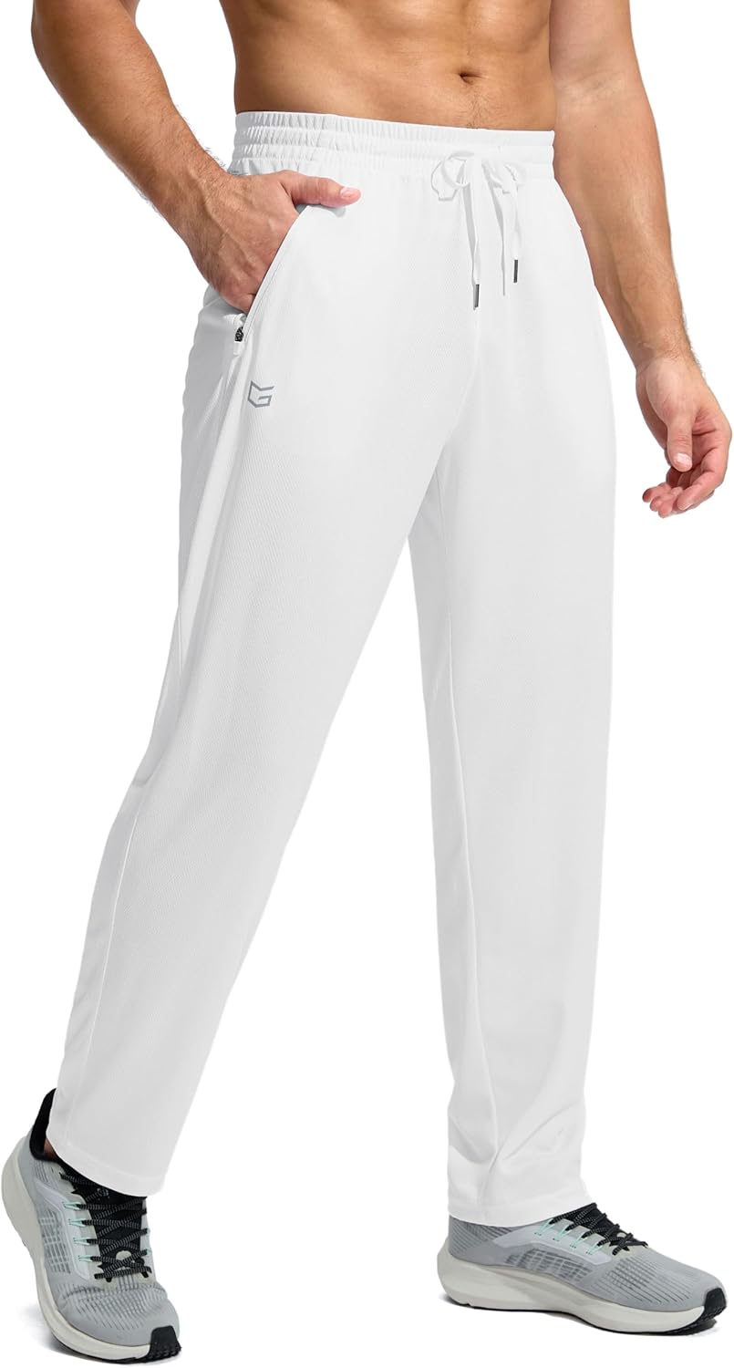 G Gradual Men's Sweatpants with Zipper Pockets Lightweight Mesh Athletic Pants for Men Open Bottom Workout Gym Running