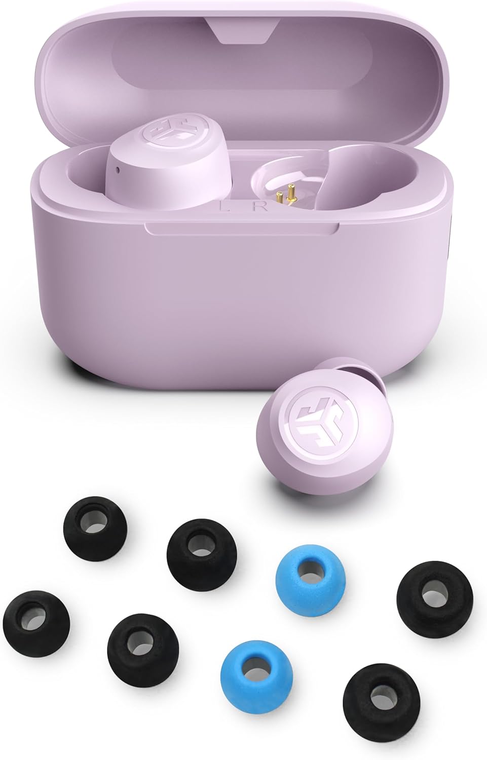 JLab Go Air Pop+ True Wireless Bluetooth Earbuds in Lilac Plus Cloud Foam Mnemonic Earbud Tips