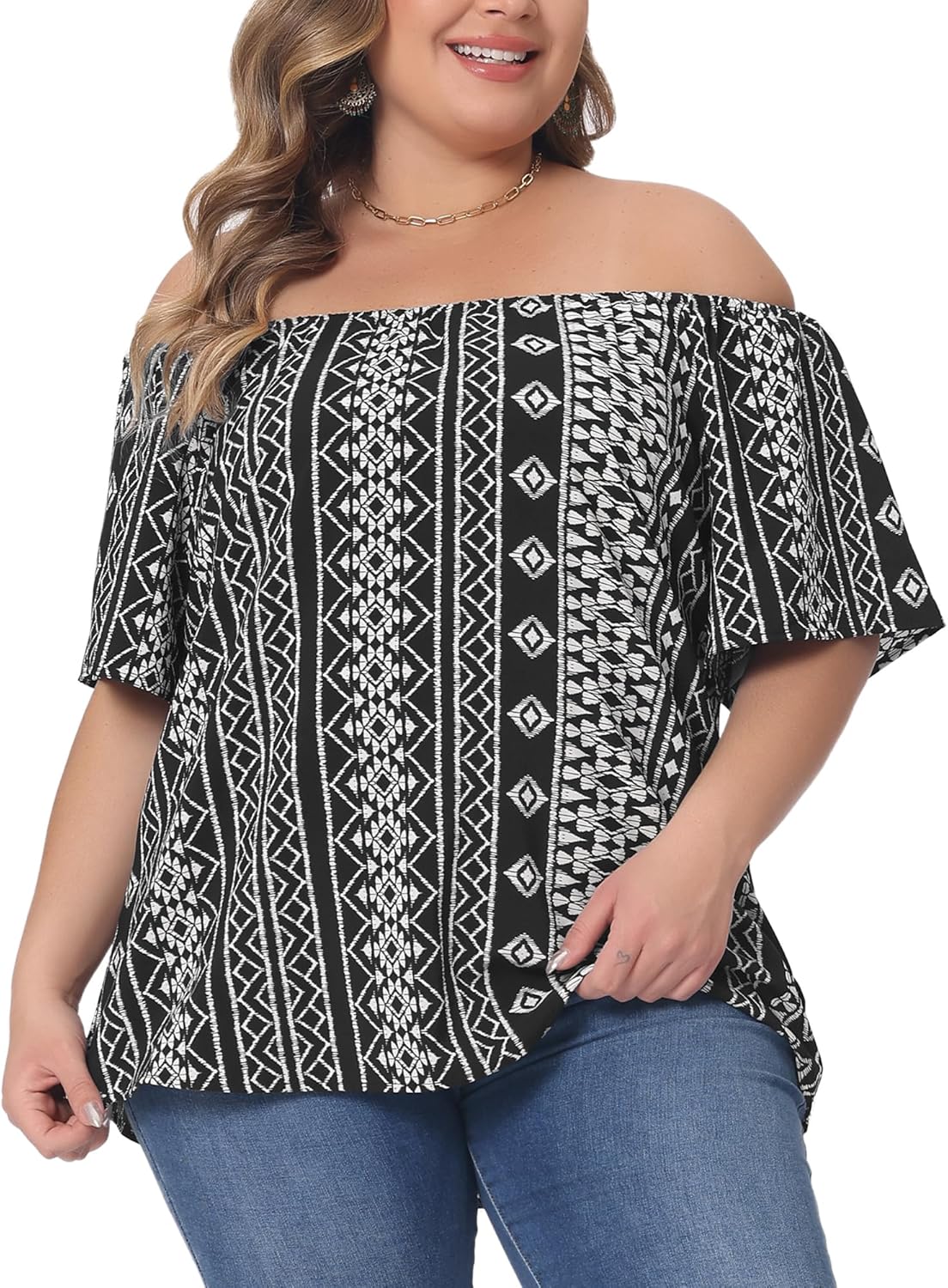Agnes Orinda Plus Size Summer Boho Shirt Top for Women Off Shoulder Short Sleeve T-Shirts Casual Blouses Tops