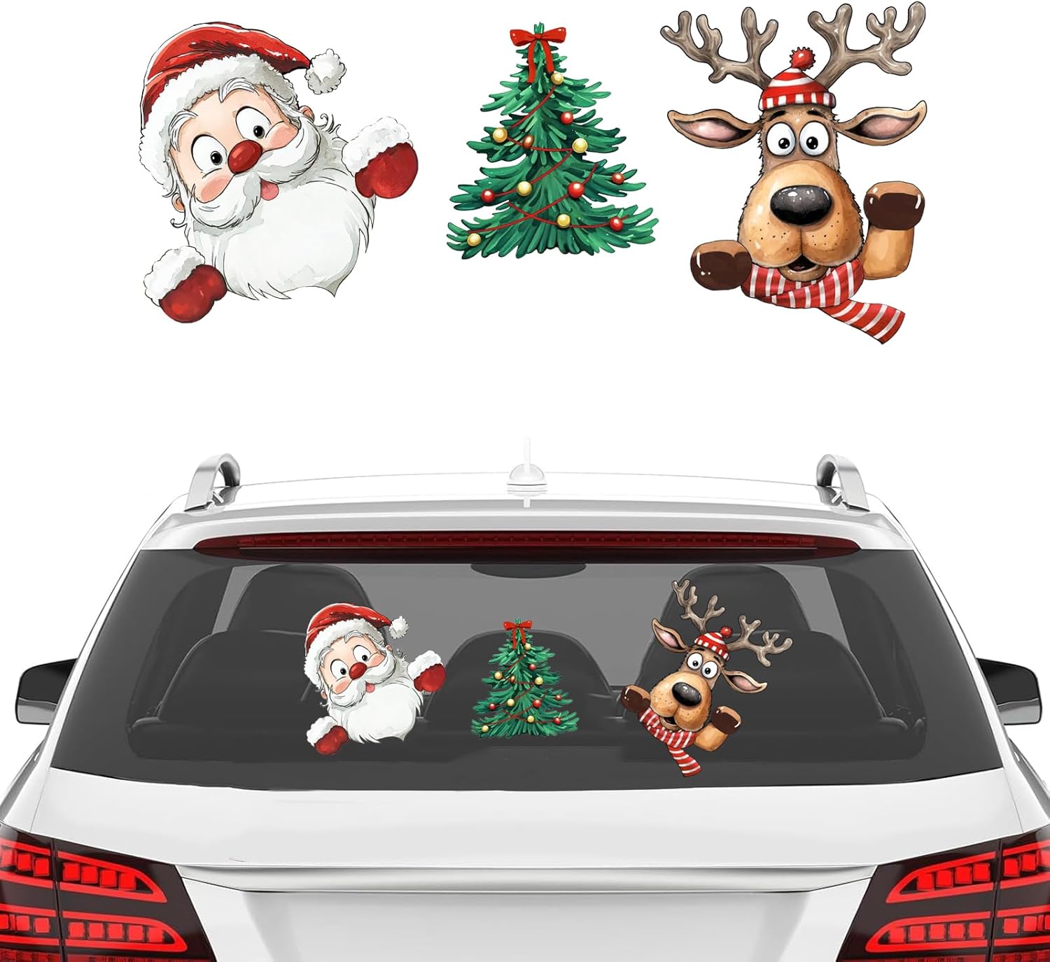 Mfault 3 PCS Christmas Santa Claus Car Stickers, Cute Xmas Tree Reindeer Gifts Waterproof Vinyl Decals, Winter Holiday Bumper Sticker for Window Wall Laptop Decorations Accessories